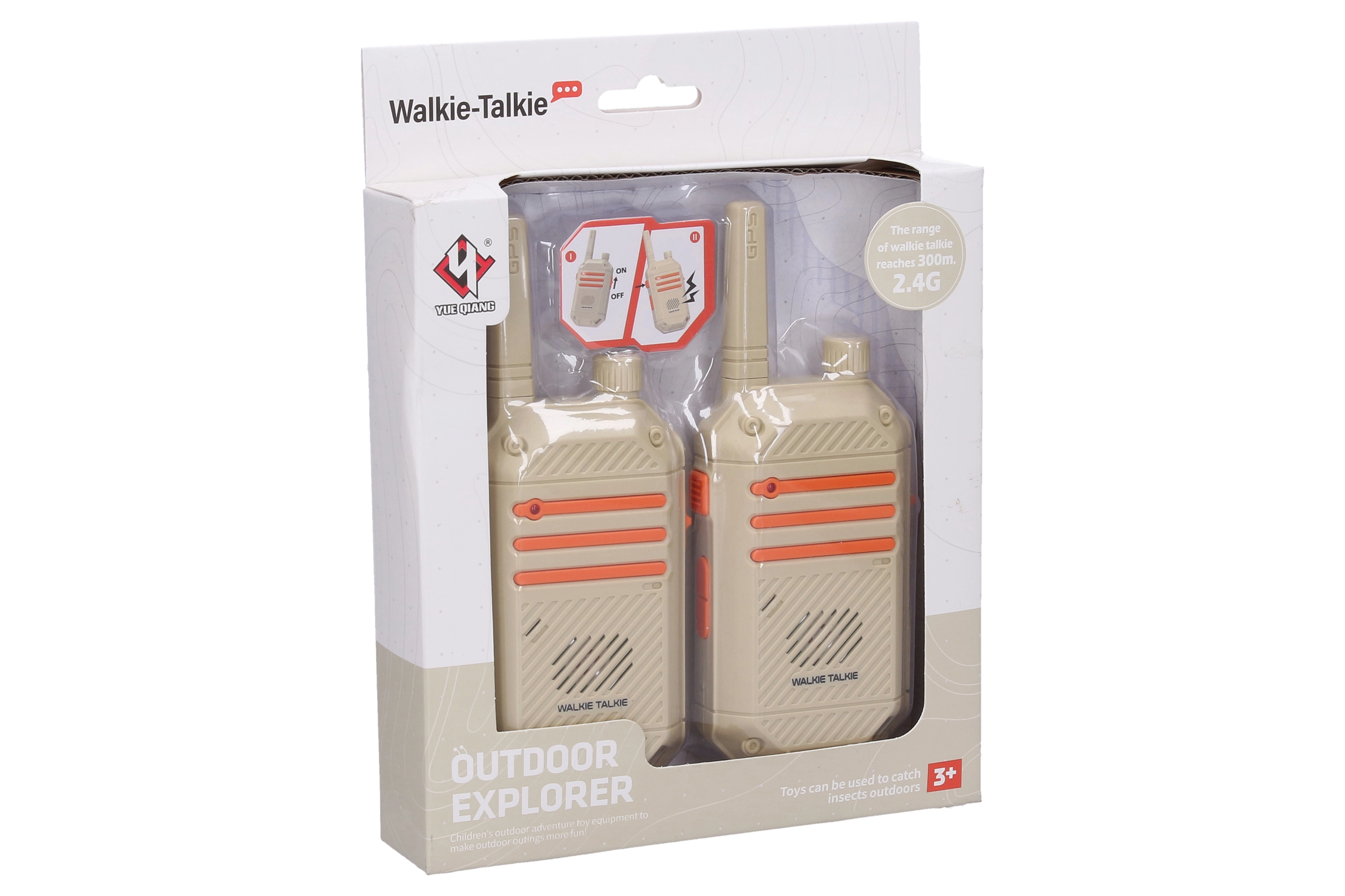 Praktičen komplet dveh walkie-talkie postaj za preprosto komunikacijo na krajših razdaljah. Ponuja doseg do 300 m, stabilno frekvenco 2,4 GHz in enostavno upravljanje zahvaljujoč stikalu ON/OFF. Vsaka postajica je kompaktna (17 × 7 cm) in se napaja s tremi baterijami AA.