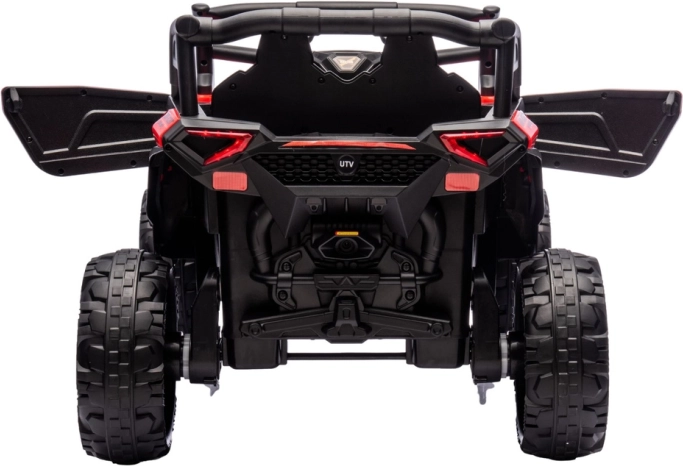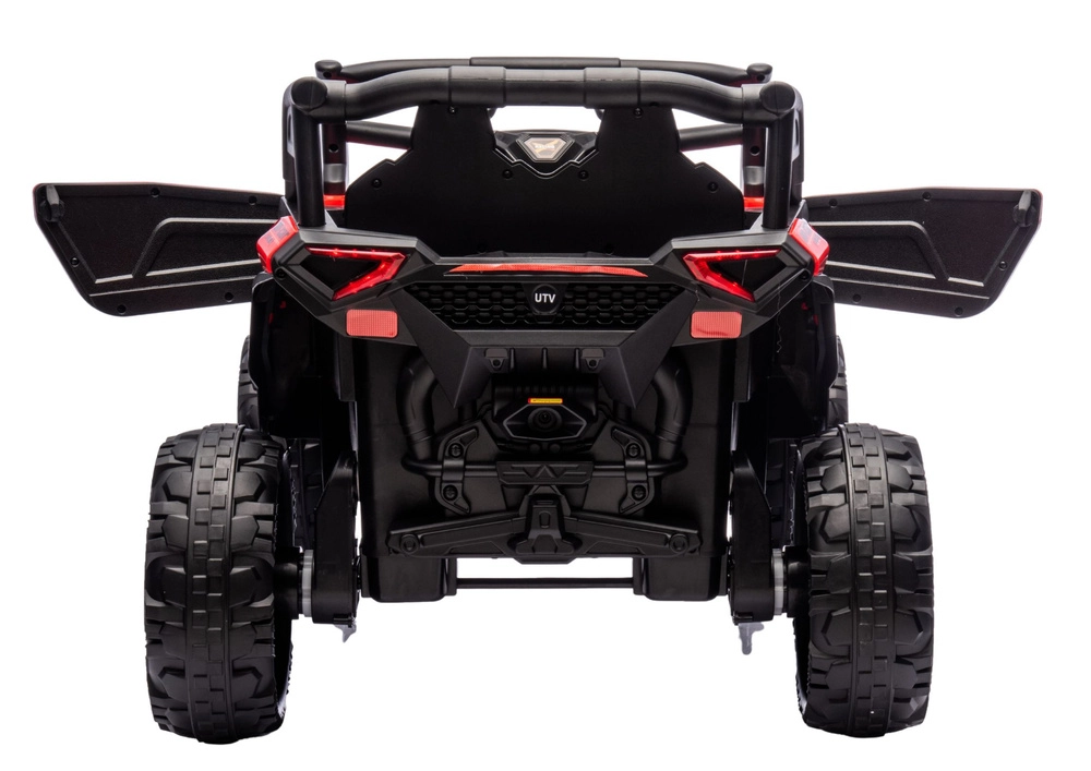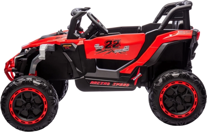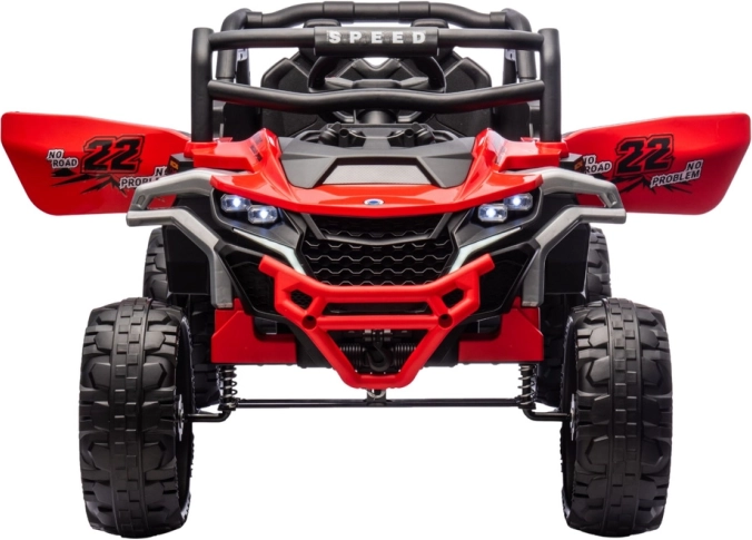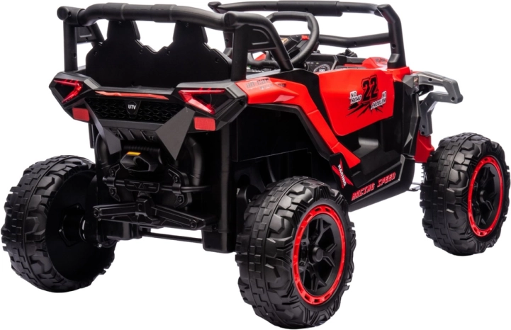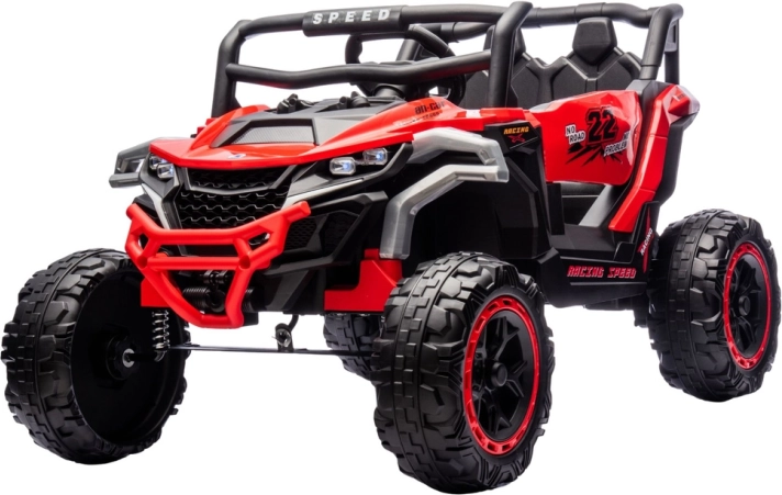Robusten električni avto za otroke v privlačni rdeči barvi ponuja pogon 4x4, terenska kolesa in športen videz z zaščitnim okvirjem. Dva sedeža in realistični detajli zagotavljajo zabavno in varno vožnjo na vrtu in v parku.