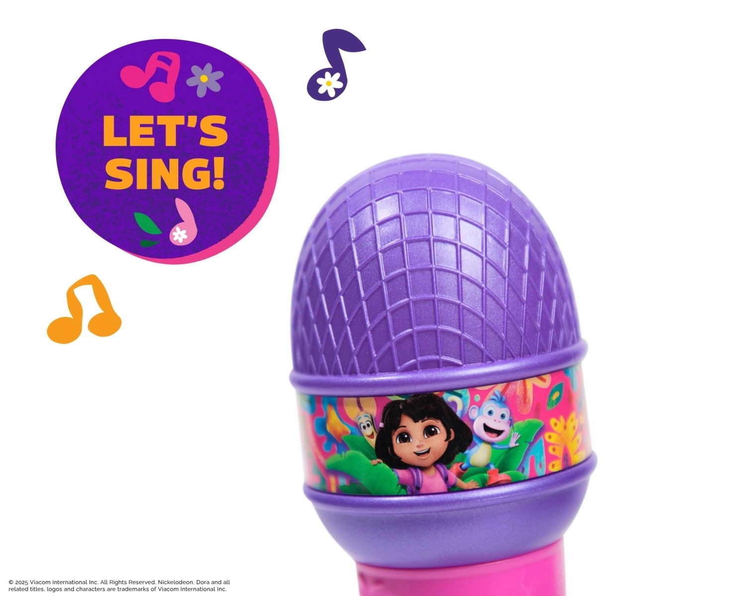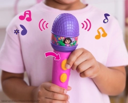 Mikrofon z učinki DORA je odlična izbira za male pevce in oboževalce priljubljene junakinje. Z enim samim pritiskom na gumb otroci zaženejo znane hite, kot sta »We Did It« ali »Todo Juntos«, ali pa poslušajo vesele fraze, na primer »That's banana-riffic!«. Kompaktna velikost (19,5 cm) dobro leži v roki in spodbuja naravno otroško ustvarjalnost.