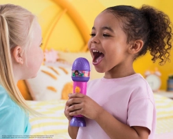 Odkrijte čar petja z otroškim mikrofonom DORA! Ta barvit mikrofon ponuja zvočne učinke, 5 priljubljenih pesmic in dvojezične fraze DORE in njenega prijatelja Butka. Zahvaljujoč enostavnemu upravljanju bodo otroci uživali v petju, plesu in igri vlog – idealna velikost za otroško dlan, baterije so priložene.