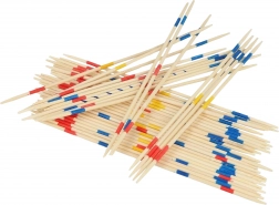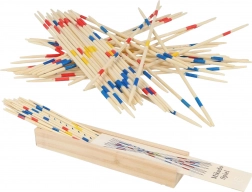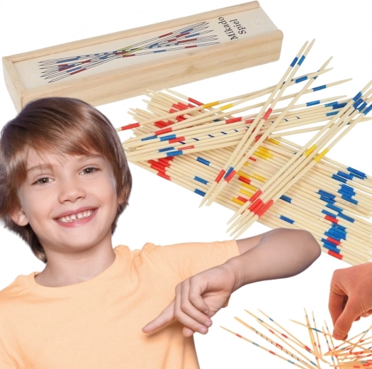 Klasična igra mikado iz kakovostnega naravnega lesa prinaša zabavo ter vajo potrpežljivosti in natančnosti. Preprosta pravila, barvno označene paličice za lahko točkovanje in praktična embalaža naredijo ta komplet odlično izbiro za družine, vrtce in prostočasne centre. Idealno za doma, na poti in za piknik.