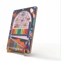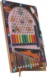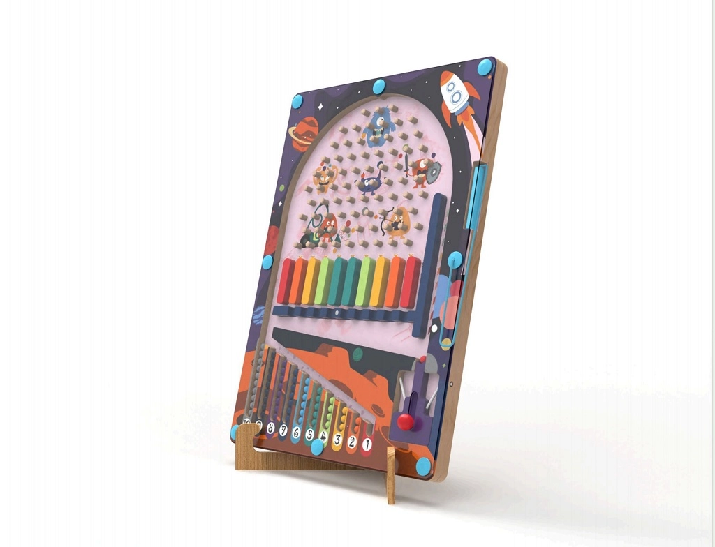 Ta izvirna lesena igra z vesoljskim dizajnom združuje akcijsko zabavo pinballa s pametnim točkovanjem s pomočjo magnetnih kroglic. Z izstreljevalnikom se otroci trudijo zadeti izbrana polja, spremljati rezultat in izboljševati svoj občutek ter natančnost. Pregledna postavitev igralne površine olajša vrednotenje rezultatov in motivira k nadaljnjim poskusom.