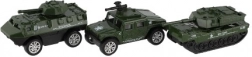 Set vsebuje 12 vojaških vozil v merilu 1:60, ki zagotavlja ure zabave za otroke. Večina je narejena iz kombinacije kovine in plastike, kar omogoča dolgo življenjsko dobo in trpežnost. Idealno je za otroke, ki radi raziskujejo različne vojaške scenarije in strateške igre.