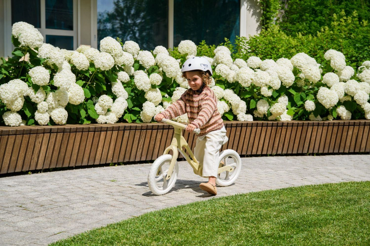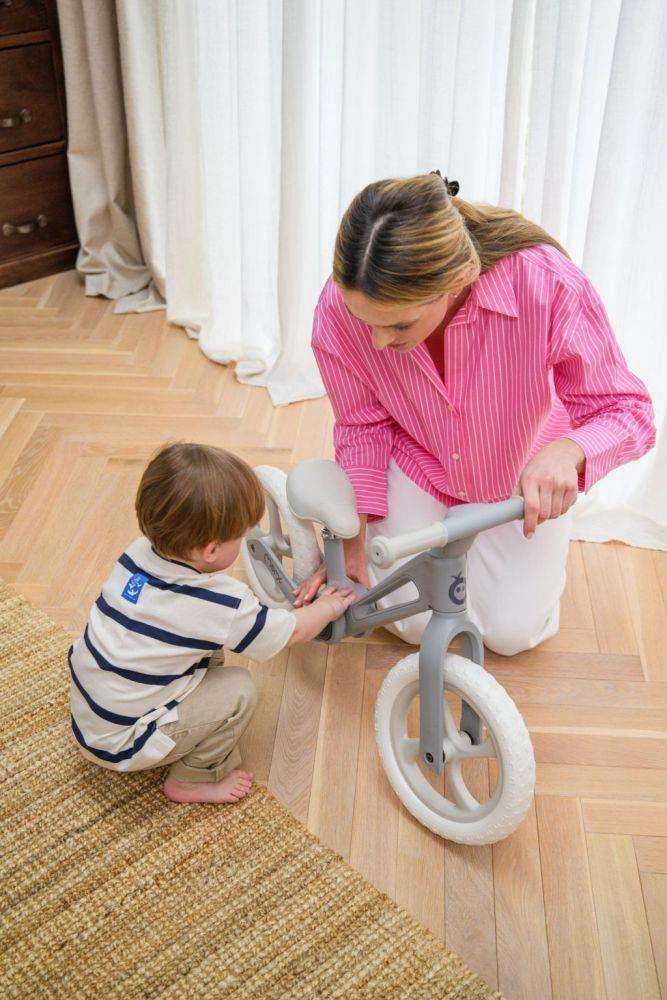 Zahvaljujoč širokemu razponu nastavitve sedeža (brez uporabe orodja) poganjalno kolo raste z vašim otrokom. Nedrseči ročaji in odsotnost zapore krmila prispevajo k varnejšemu upravljanju, kar je idealno za prve vožnje z ravnotežjem.