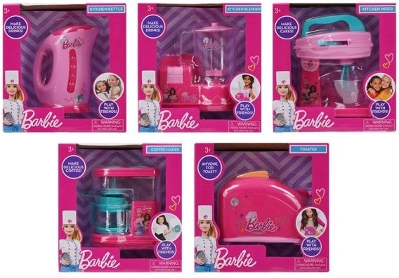 Izbirate lahko med različnimi vrstami aparatov, kot so kavni aparat, toster, mešalnik ali grelnik vode. Vsak komplet je zasnovan tako, da je za otroke enostaven za uporabo in hkrati vizualno privlačen – v ikoničnem slogu BARBIE.