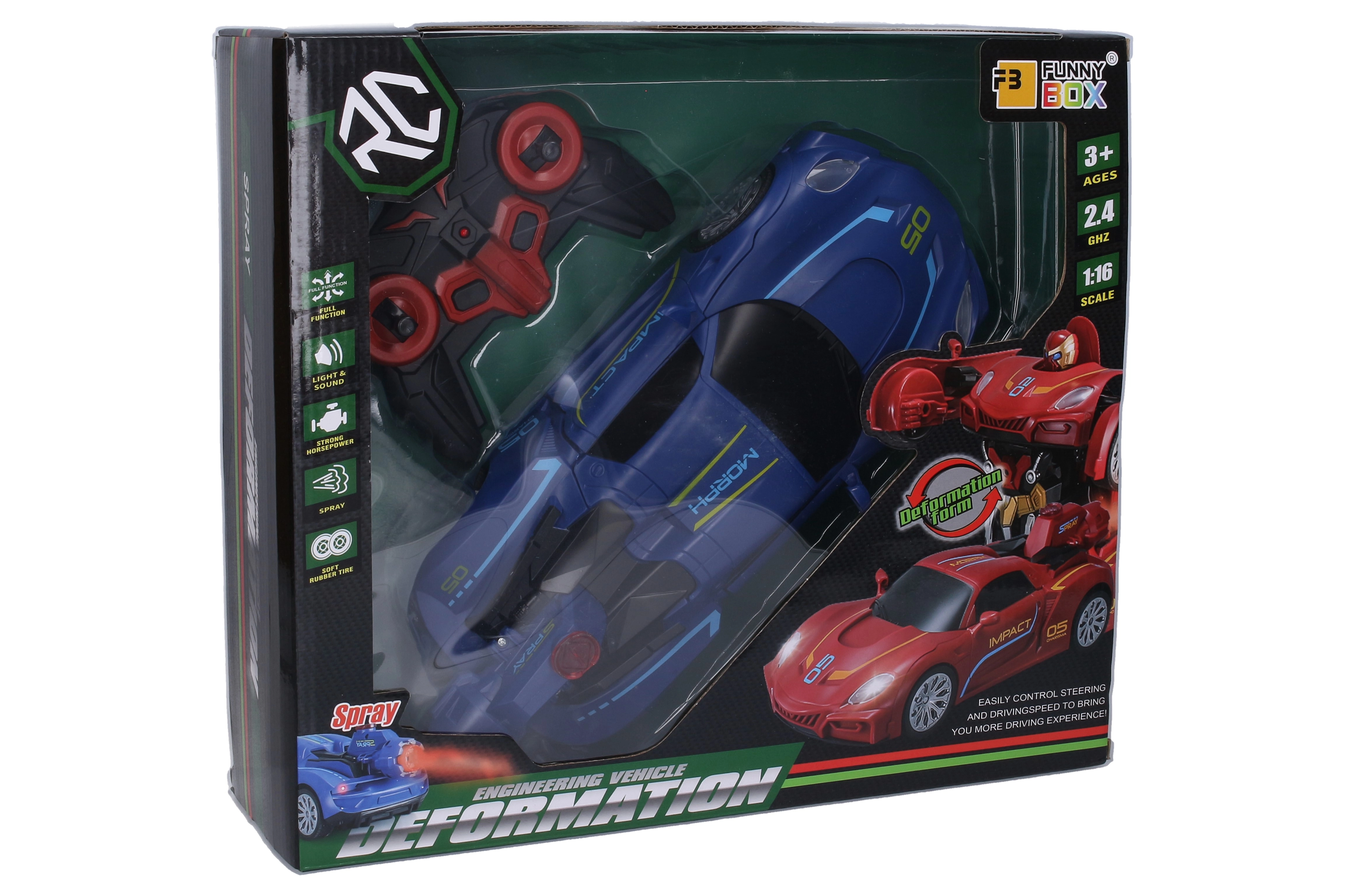 Upravljanje je intuitivno z daljinskim upravljalnikom, zato se zlahka podate v vožnjo, zavijate ali prikazujete trike. Robustna izdelava je primerna za običajno domačo uporabo. Odlična ideja za darilo za ljubitelje avtomobilov, robotov in akcijskih igrač.