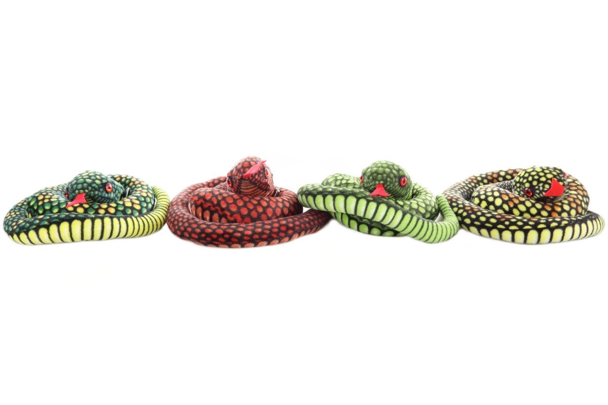 Ta plišasta kača bo vsakega otroka razveselila s svojo mehkobo in prijaznim videzom. Zvita je v klobčič, zato se udobno prilega otroški ročici in ne ovira med spanjem ali na poti. Kakovostna izdelava in nežen površinski material sta idealna za crkljanje in pomiritev.