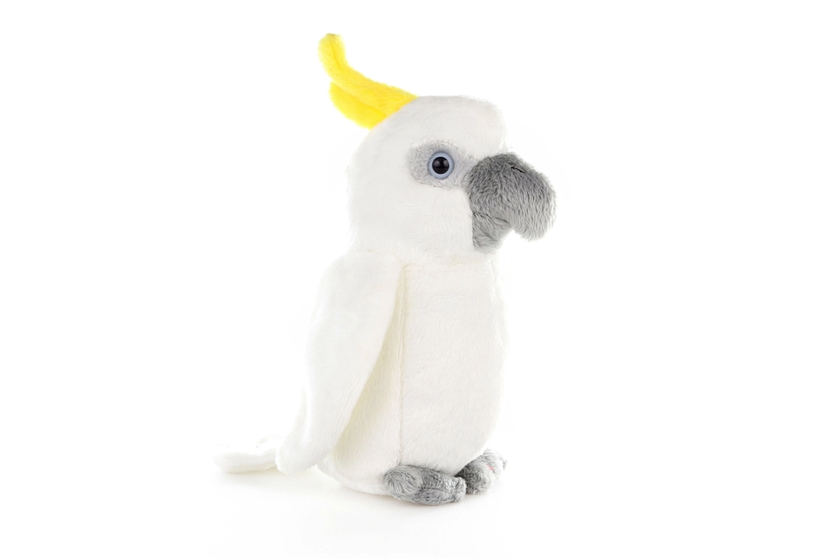Ljubek plišasti kakadu papagaj z višino približno 16 cm razveseli otroke in ljubitelje živali. Ima mehko telesce in dovršeno izdelavo, ki vabi k objemom in igri. Idealen kot darilo, za zbiratelje in za potovanja zaradi kompaktne velikosti.