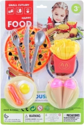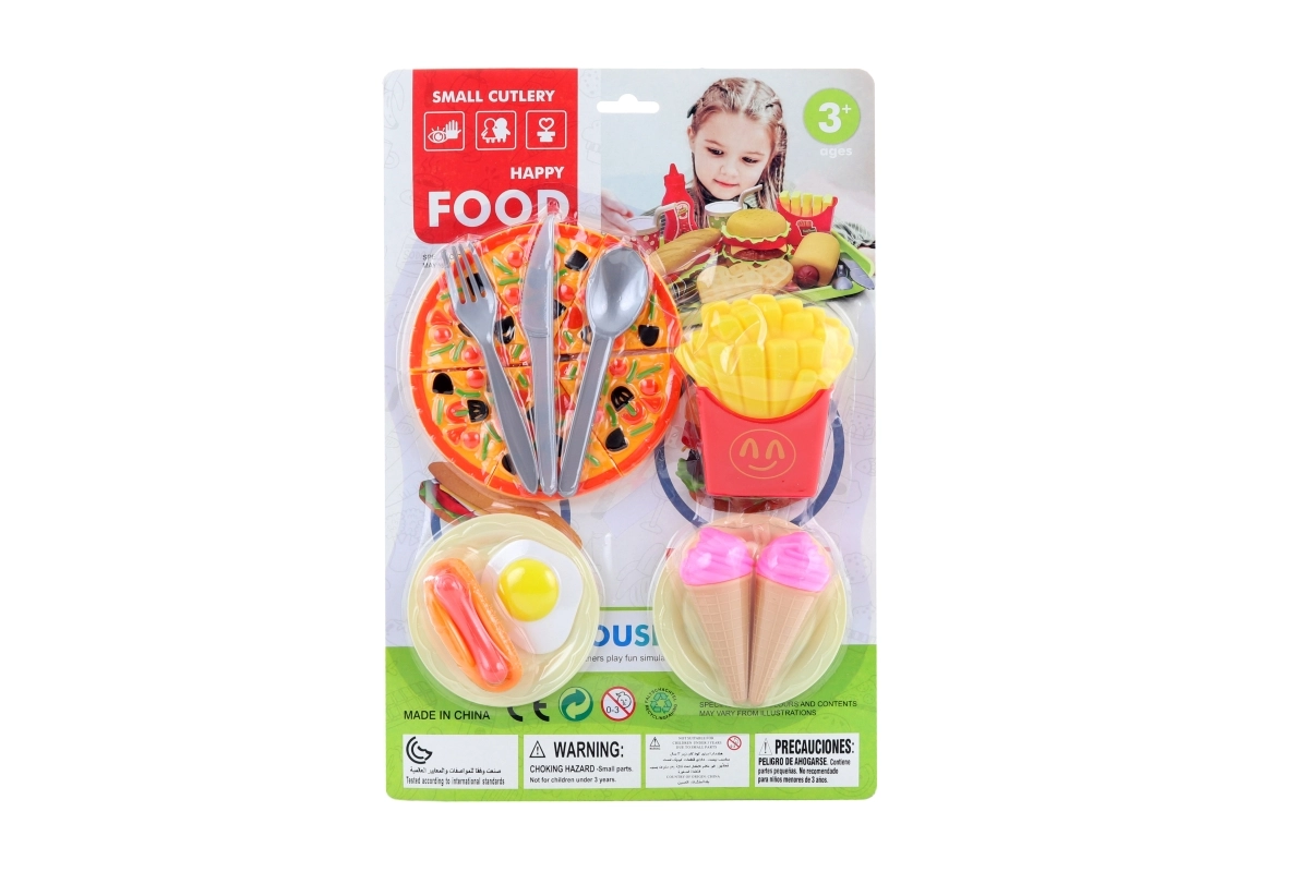 - Vsebina seta: pica na kose, pomfri v škatlici, hot dog, ocvrto jajce, 2 sladoleda, 2 krožnika, pribor