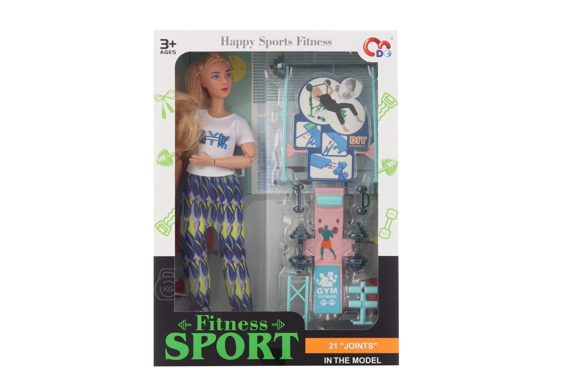 Odkrijte zabavo in gibanje s to gibljivo punčko in bogatim kompletom fitnes dodatkov. Punčka ima prilagodljivo glavo, roke in noge, zato zlahka zavzame številne realistične poze pri vadbi. Del kompleta sta vad klop in 5 ročk različnih velikosti. Idealna ustvarjalna igra za otroke od 3 let dalje.