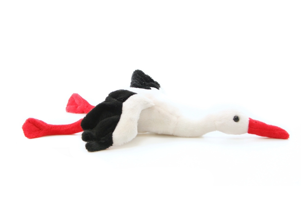 Prisrčna plišasta štorklja z dolgimi nogami in izrazitim kljunom bo razveselila najmlajše in starejše otroke. Je mehka na dotik, lahka in varna že od 0+ . Idealna kot crkljiv prijatelj v posteljici in kot dekoracija v otroški sobi. Dimenzije približno 30 × 19 cm.