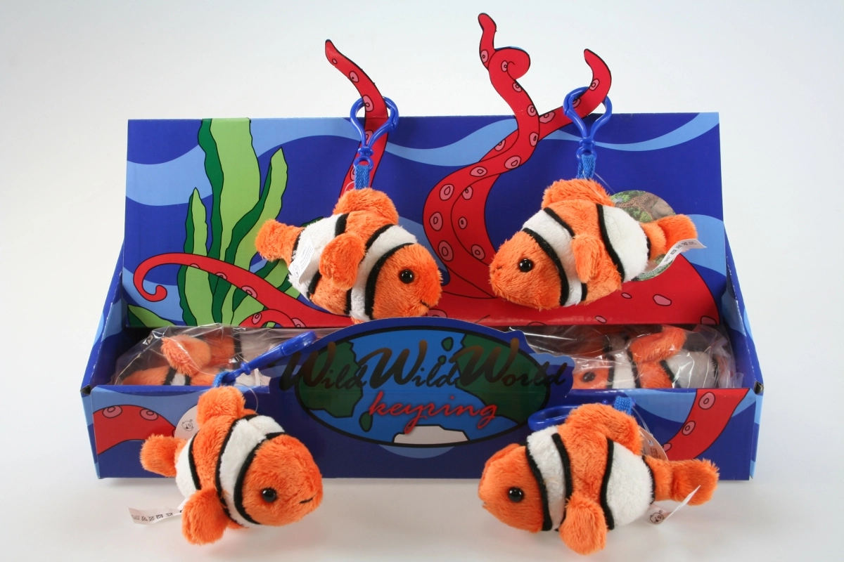 Prisrčna plišasta ribica v podobi klovn ribe kot obesek za ključe razveseli tako otroke kot odrasle. Zaradi kompaktne velikosti približno 10 cm je idealna za ključe, nahrbtnik ali torbico, mehka izdelava pa je prijetna na dotik. Lahka, mehka in enostavna za pripenjanje za vsakodnevno uporabo.