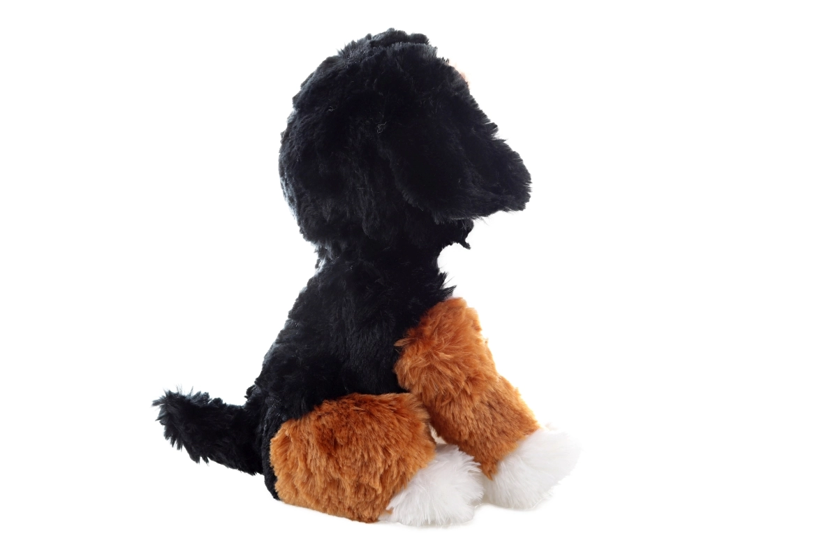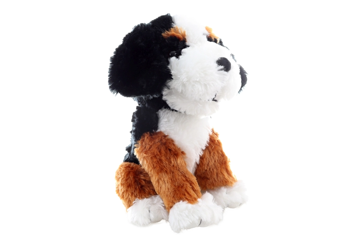 Prisrčen plišasti kužek, navdihnjen z pasmo bernski planšarski pes, je idealen spremljevalec za crkljanje in igro. Zahvaljujoč izjemno mehkem in gladkem kožuhu, varno všitim očem in smrčku ter sedečemu položaju razveseli otroke že od 0+. Odlično darilo za male ljubitelje živali.