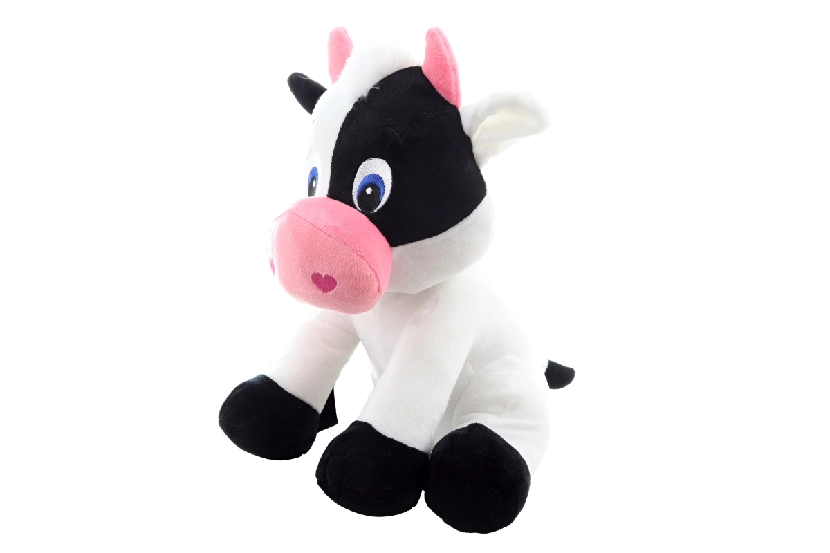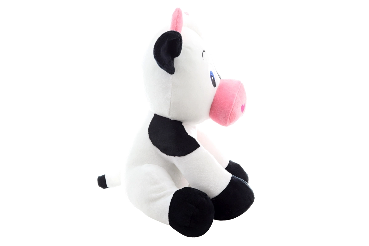 Ta prisrčna plišasta kravica otrokom prinaša občutek varnosti in veliko nežnih objemov. Mehak površinski material je prijeten na dotik, všite oči in detajli pa so varni tudi za najmlajše. Zaradi velikosti 30 cm se odlično prilega otroškim rokam in je idealna za spanje, igro in crkljanje.