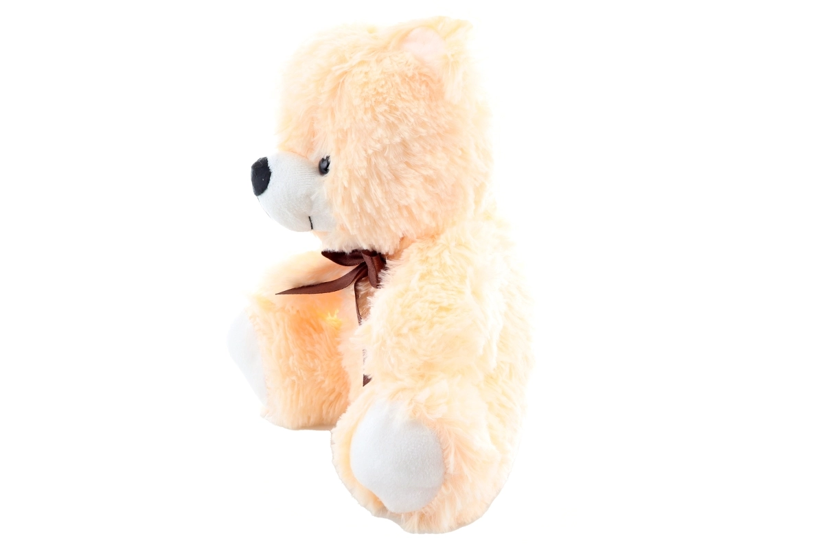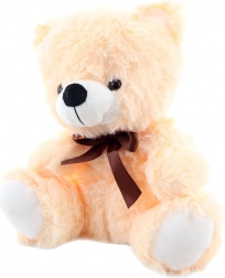 Ta svetel plišasti medvedek bo postal najboljši prijatelj za cartanje in uspavanje. Njegovo nežno in puhasto kožušček je prijeten na dotik, medtem ko kontrastne tačke in okrasna mašna igrački dodajo eleganten videz. Zaradi skrbne izdelave in varnih detajlov je primeren tudi za najmlajše otroke od 0 let.
