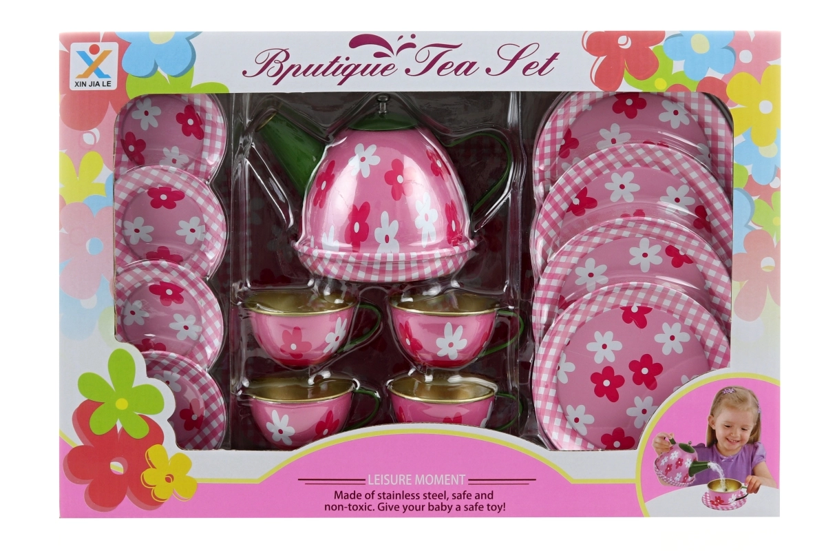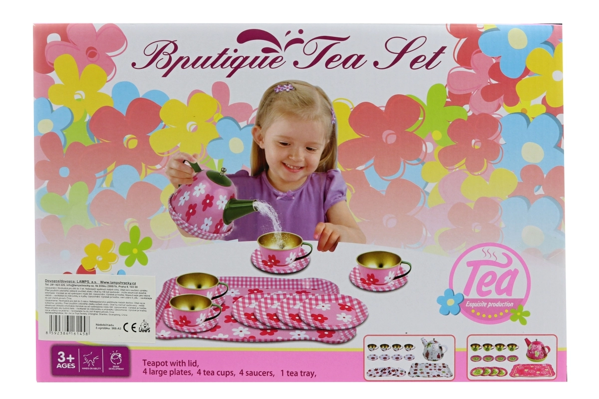 Slogovit kovinski čajni set z nežnim cvetličnim motivom bo razveselil vsako malo gostiteljico. Vsebuje vse za popolno igro čajanke – od čajnika do krožničkov in pladnja. Set je lahek, trpežen in varen za otroke od 3 let. Popoln komplet, cvetlični dizajn in vzdržljiva kovinska izdelava zagotavljajo ure zabave ter razvoj otroške domišljije.