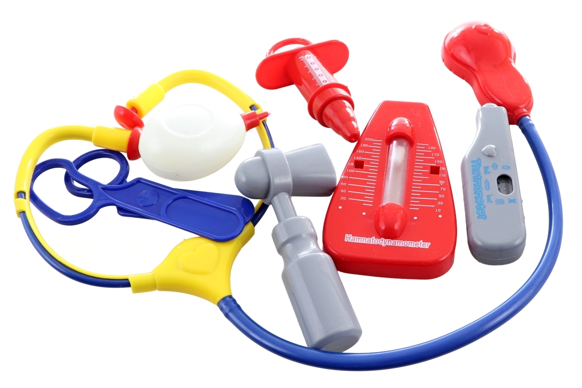 - Vsebina paketa: otroški zdravniški plašč + set zdravniških pripomočkov