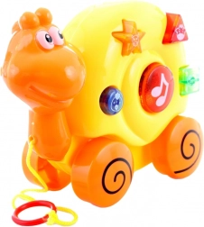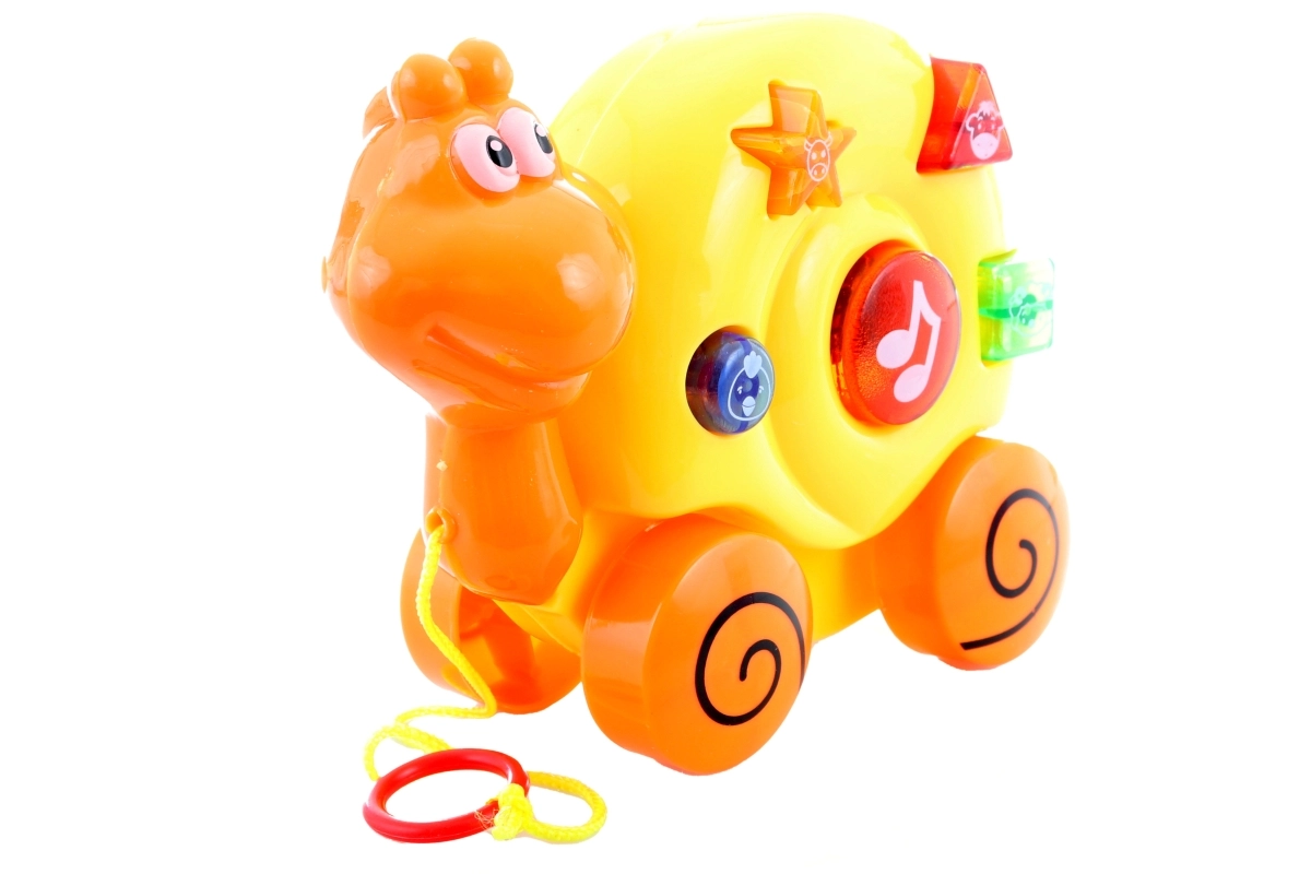 Ta barvit vlečni polž je idealna prva igrača na vrvici. Med premikanjem oddaja veselje melodije in zvoke živali, s čimer spodbuja otrokovo radovednost in razvija čute. Zaradi robustne plastične izdelave je varen in odporen za vsakodnevno igro.