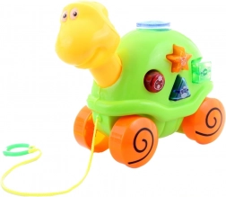 Ta barvita vlečna želvica je idealna igrača za malčke od 10 mesecev dalje. Med premikanjem predvaja vesele melodije in realistične živalske zvoke, ki otroke spodbujajo k hoji, plazenju in raziskovanju. Trpežen plastičen material zagotavlja enostavno vzdrževanje in dolgo življenjsko dobo.