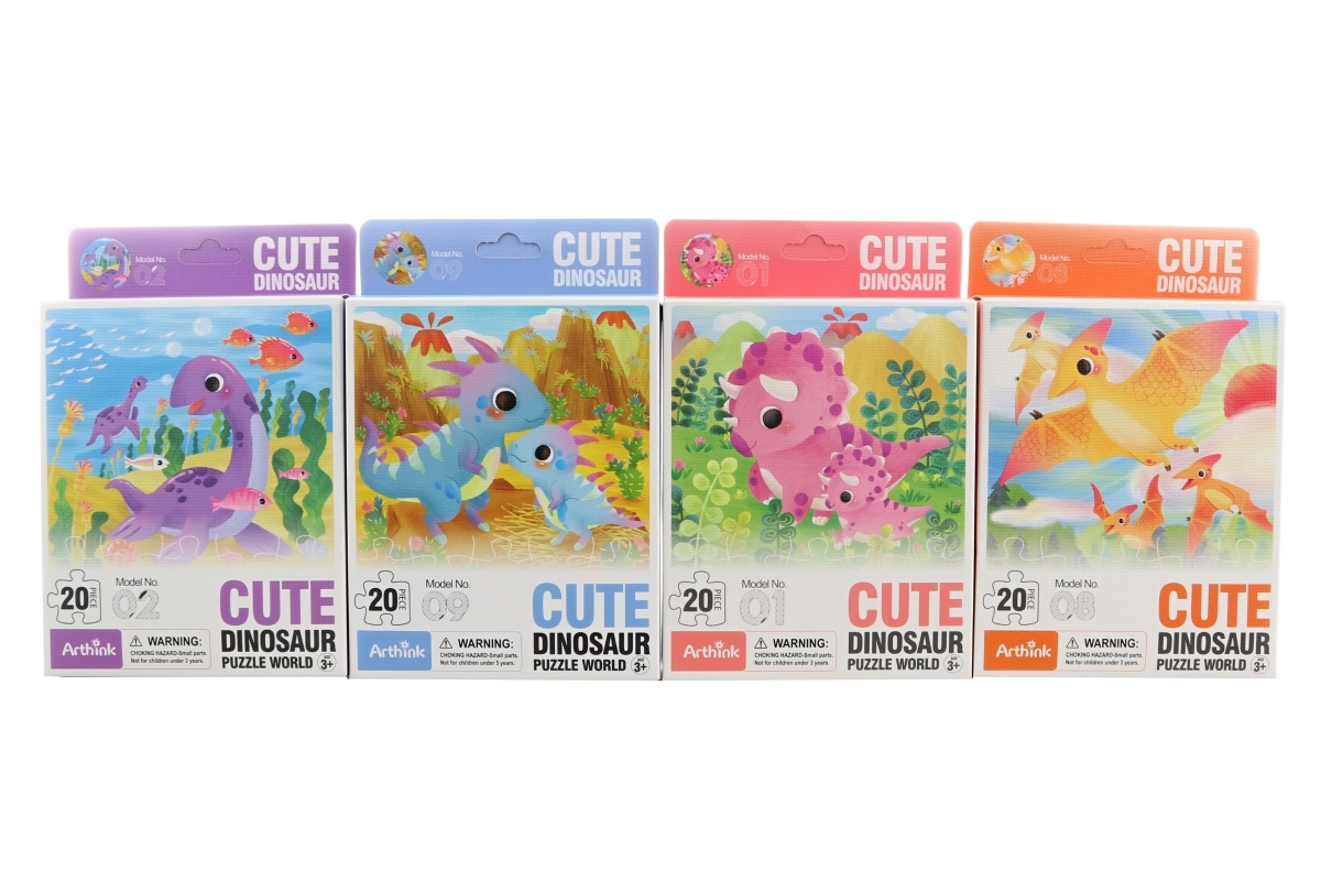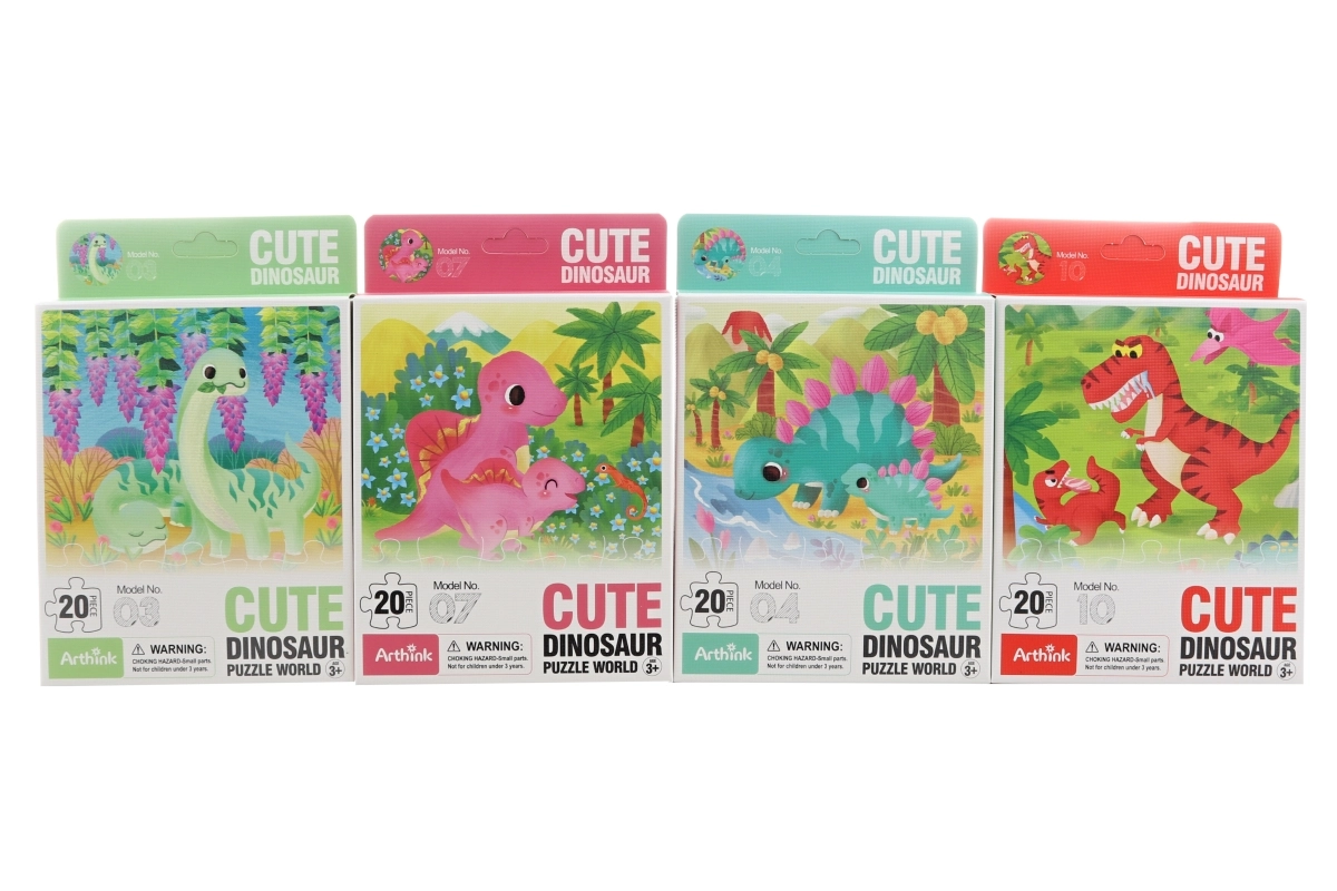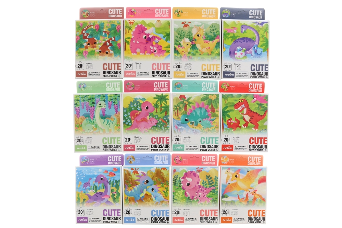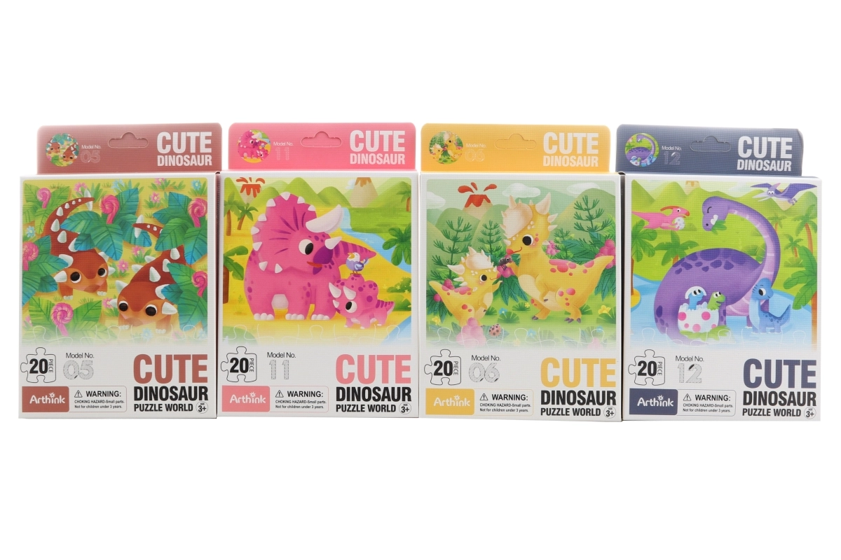 Zabavna otroška sestavljanka z motivom veselih, barvitih dinozavrov bo razveselila male raziskovalce od 3 let. Vsebuje 20 trdnih kosov iz kartona, enostavno se sestavlja in je zaradi večjih kosov idealna za majhne ročice. Končana sestavljanka ima kompaktne mere 21 × 19 cm in je priložena v praktični škatlici za enostavno shranjevanje.