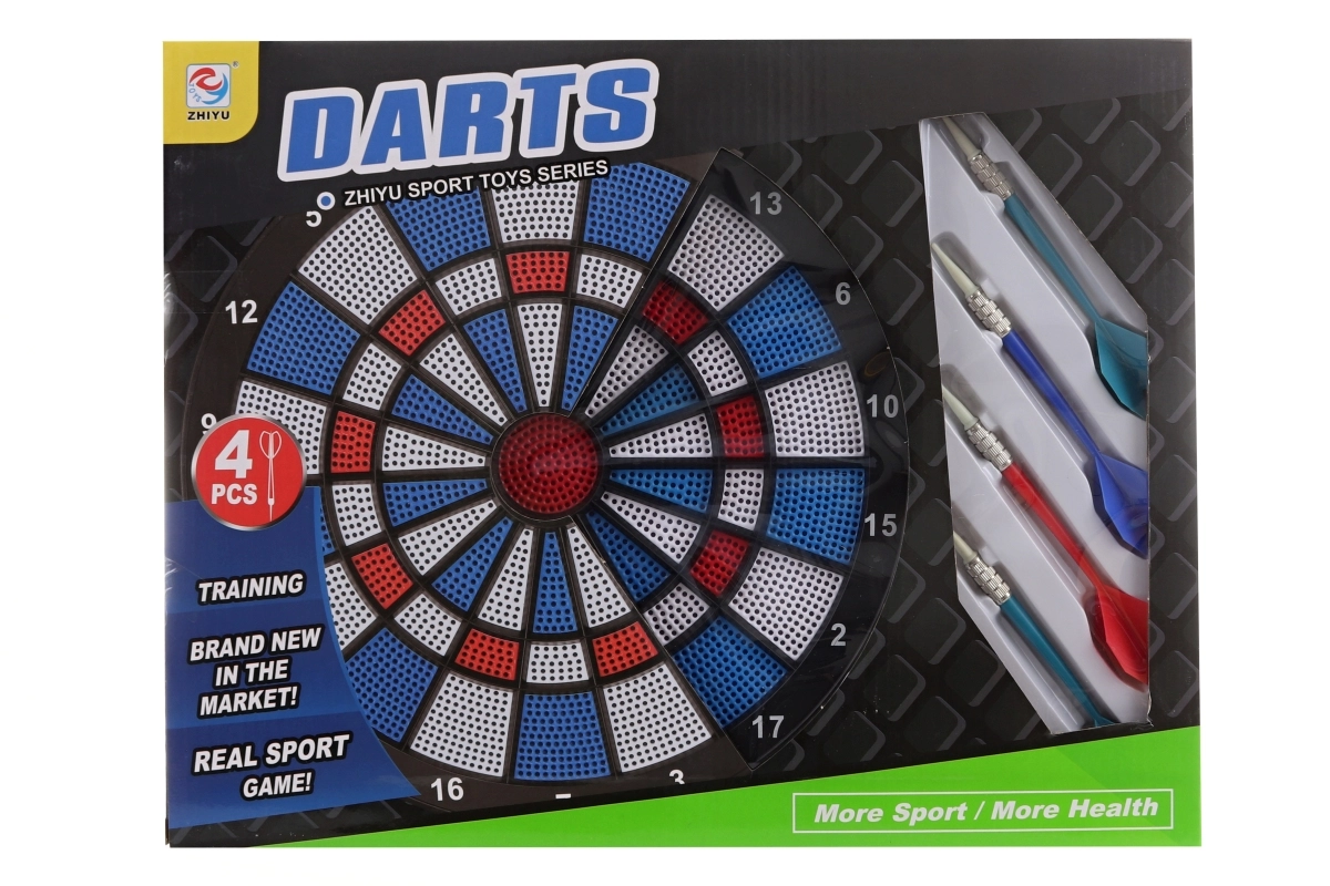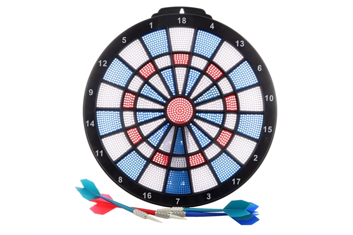 Ta kompaktni set združuje zabavo in urjenje natančnosti v enem. Tarča s premerom približno 28 cm je odlična za začetnike in manj zahtevne igralce. Štiri priložene puščice s plastičnim ohišjem in kovinskim težiščem zagotavljajo uravnotežen let in udoben oprijem.