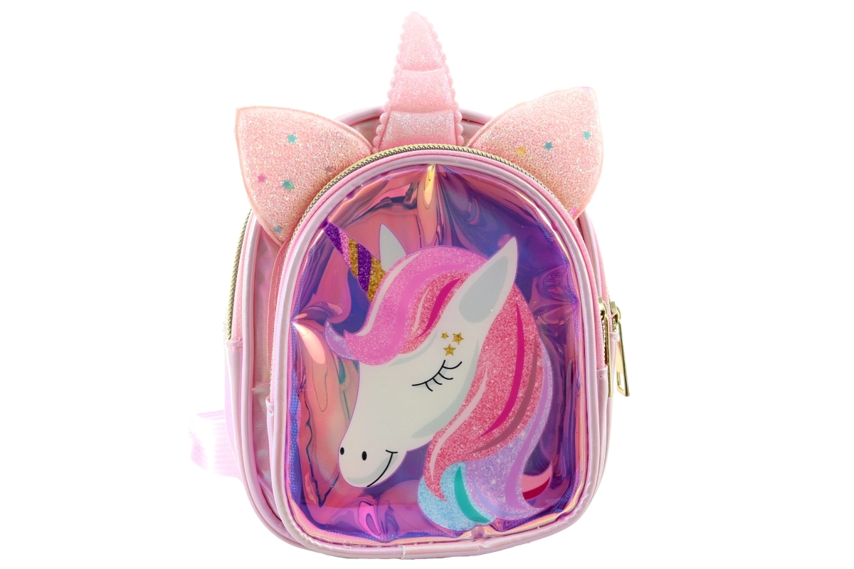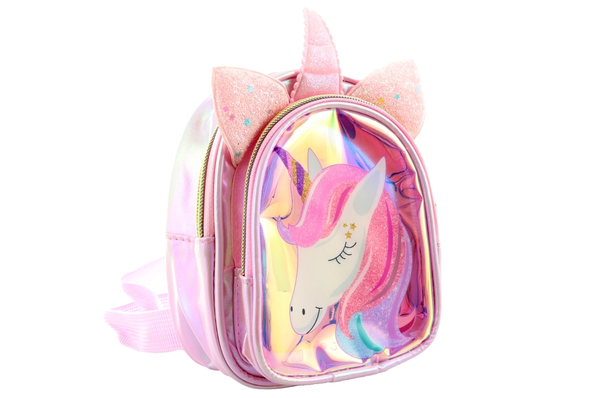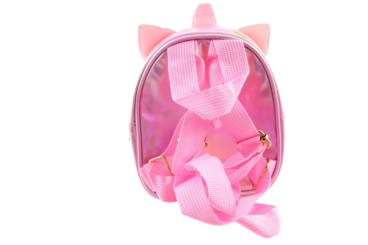 Iridescentna, bleščeča površina in prikupni 3D detajli (uheljčki in rog) naredijo nahrbtnik izjemen dodatek za vsak dan.