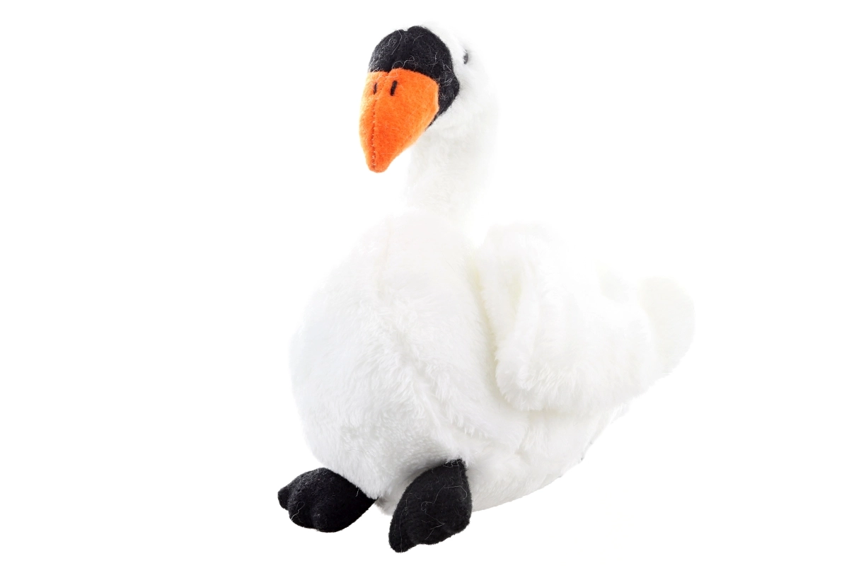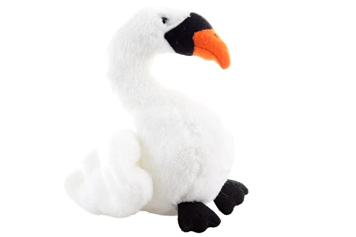 Ta nežna plišasta labodka z oranžnim kljunčkom in črnimi detajli je čudovit spremljevalec za dojenčke in starejše otroke. Kompaktne mere 13 × 13 × 9 cm omogočajo enostaven prijem in prenašanje, zato je primerna za dom, voziček in potovanja.