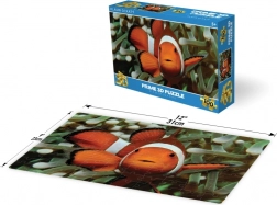Lentikularna 3D slika s klovn ribico navduši z globino in živahnimi barvami. Pregledna škatla navaja število koščkov in dimenzije za lažjo izbiro.