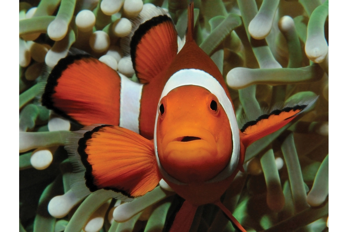 Klovn ribica v naravnem okolju med morskimi vetrnicami bo navdušila ljubitelje narave in morskih živali.