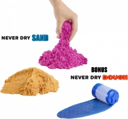 Posebna formula zagotavlja, da pesek ostane vedno voljan in oblikovalen – stiskajte, režete in oblikujte brez časovnih omejitev.
