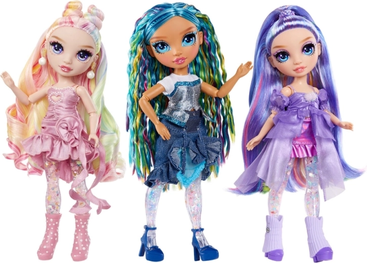 Odkrijte čar barv z punčko Rainbow High Rainbow Shimmers! Ta ustvarjalna igrača otrokom omogoča, da ustvarjajo lastne mavrične učinke s slimeom, ki se vstavi v noge punčke za edinstveno preobrazbo videza. Punčka ima razkošne lase z mavričnimi prameni, nežne trepalnice in očarljive steklene oči. Zahvaljujoč polni artikulaciji jo je enostavno postavljati v poze in je idealna za ustvarjalno igro.