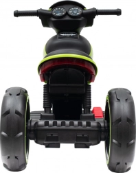 Sodoben otroški električni motor Baby Mix Police v zeleni barvi ponuja otrokom od 3 do 7 let varno vožnjo s hitrostjo 2–4 km/h, udoben širok sedež in stabilna velika kolesa. Dva motorja 6V/24W z zadnjim pogonom in baterija 6V/7Ah zagotavljata do 1–2 uri zabave. Ne manjkajo LED luči, zvočni efekti in možnost predvajanja glasbe prek USB/MP3.