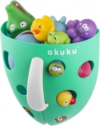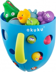 Praktična siva košara za igrače za kopalno kad AKUKU pomaga ohranjati red okoli kadi in prhe. Zahvaljujoč perforiranemu dnu in stenam voda hitro odteka, igrače in dodatki pa se enostavno posušijo. Trden ročaj olajša prenašanje, priseski pa omogočajo varno pritrditev na gladko površino brez vrtanja.