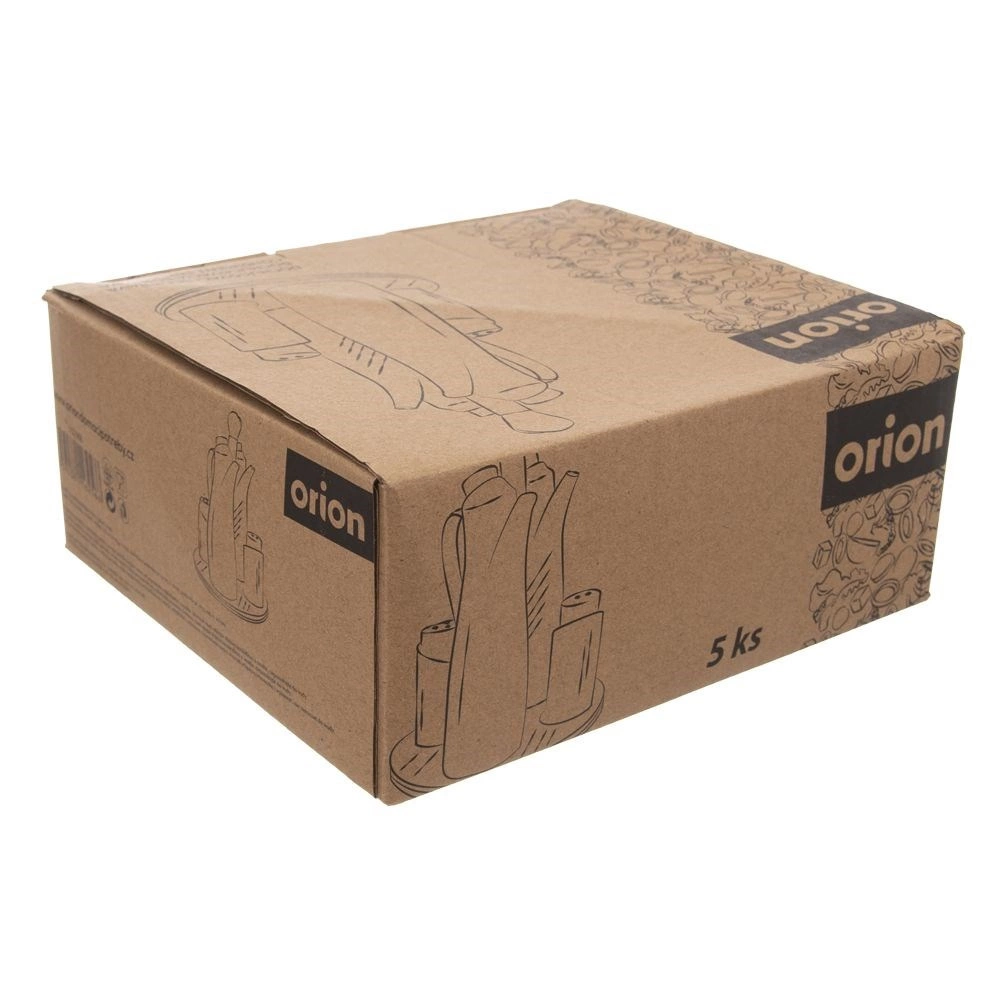 Komplet vsebuje dve 300-ml steklenici za olje in kis, solnico in popernico, vse na kompaktnem vrtljivem stojalu s praktičnim ročajem za udobno prenašanje. Minimalistična izvedba se odlično poda k moderni in klasični pogrnitvi ter omogoča elegantno serviranje začimb.