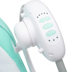 Ležalnik New Baby Teddy v elegantni mint barvi bo vašemu dojenčku ponudil mirno, zibajočo sprostitev in razigrano zabavo. Zahvaljujoč 5 hitrostim guganja in časovniku boste zlahka prilagodili ritem in dolžino guganja. Za pomiritev poskrbi do 12 prijetnih melodij z nastavljivo glasnostjo, medtem ko nastavljiv naslon zagotavlja pravilno lego telesa.
