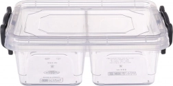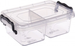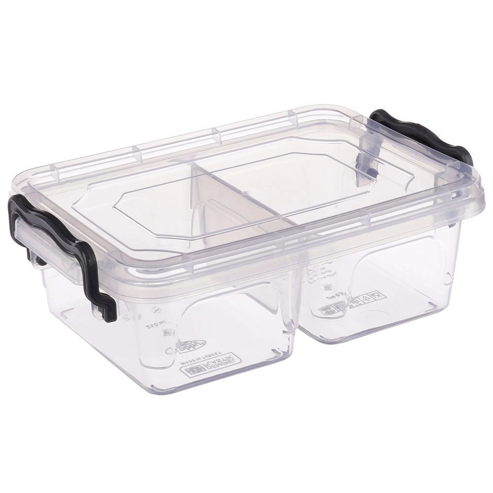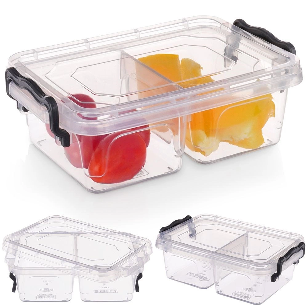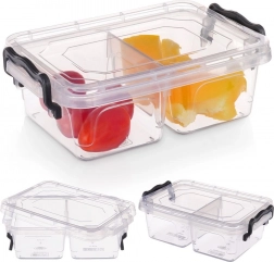 Praktična in trpežna posoda za živila s prostornino 500 ml z dvojno pregrado in varnimi zapiralnimi sponkami. Primerna za hladilnik in zamrzovalnik, lahko se pere v pomivalnem stroju in hrano pogreva v mikrovalovni pečici (brez pokrova). Idealna kot lunch box za v službo, šolo in na pot.