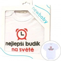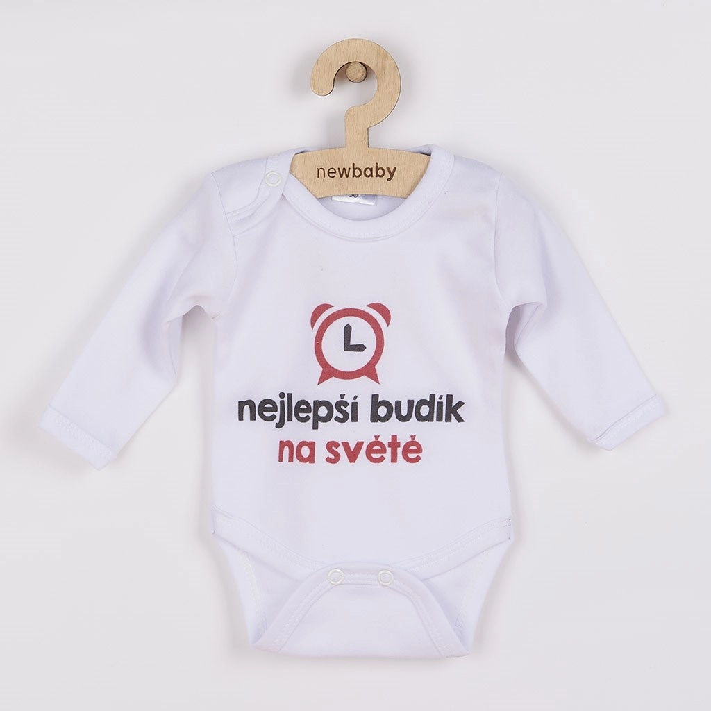 Izvirno bombažno bodi z dolgimi rokavi znamke NEW BABY razveseli z duhovitim napisom „najboljša budilka na svetu“ in prijetnim motivom budilke. Izdelano je iz 100% bombaža z certificiranimi barvami, primernimi za dojenčke. Praktično zapiranje s pritiskači na ramenu in med nožicami olajša oblačenje ter previjanje. Češka znamka, kakovosten material in udobje za vsak dan.