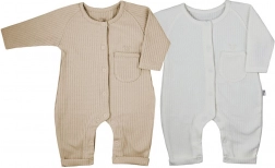 Visok delež bombaža je prijazen do občutljive otroške kože, medtem ko dodani elastan zagotavlja svobodo gibanja. Pajac je odlična izbira za spanje, doma in na poti – dojenčkov hrbtiček ostaja vedno pokrit.