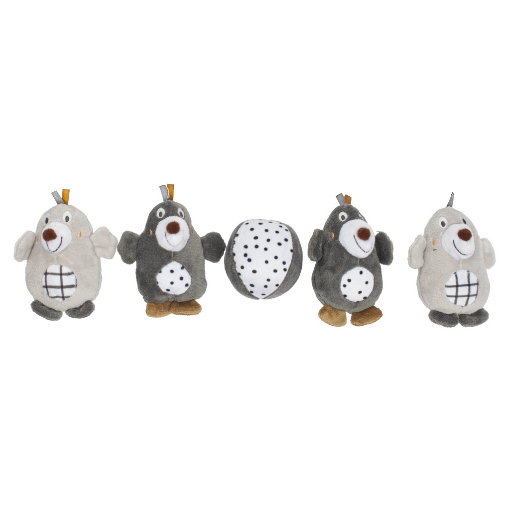 Plišaste figurice višine približno 12 cm se tekoče vrtijo in tako pripomorejo k razvoju koordinacije oči in rok ter zbranosti. Vrtež je odličen pomočnik pri uspavanju in zabava malčka med trenutki počitka.