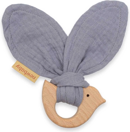 Grizalo s ptičkom New Baby Bird v elegantni sivi barvi je zasnovano za največje udobje in varnost otroka. Naravni bukov les je gladek, trpežen in nežen do občutljivih dlesni, medtem ko je muslin iz 100% organskega bombaža mehak, zračen in prijeten na otip. Skupaj tvorita praktičen in estetski pripomoček za vsakodnevno uporabo.
