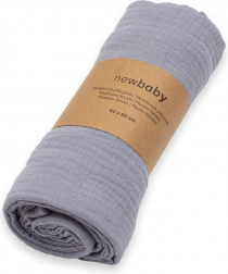 Lahka in mehka otroška muslinasta odeja New Baby v elegantni sivi barvi je idealna za vse letne čase. Izdelana je iz 100 % organskega bombaža, prijetna na dotik, zračna in nežna do občutljive otroške kože. Minimalističen dizajn in nežne barve se odlično ujemajo z drugimi muslinastimi dodatki. Certificirana kakovost, ki izpolnjuje evropske standarde.