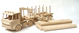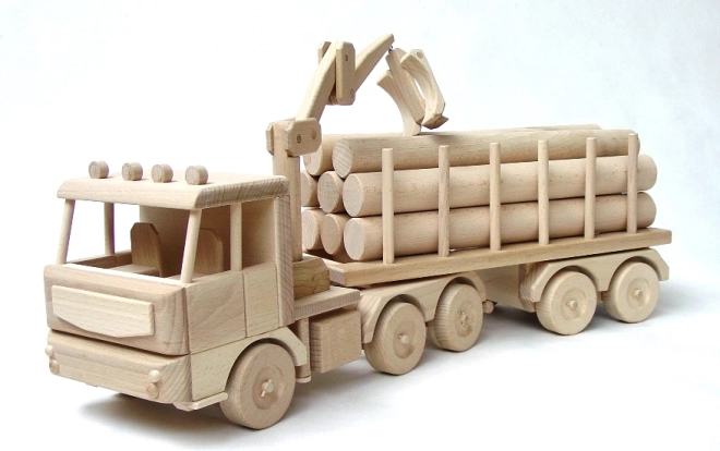 Ta robusten lesen tovornjak je premišljen do zadnje podrobnosti. Otroci bodo uživali v preprostem nakladanju in razkladanju zahvaljujoč premični roki, odstranljivim hlodom in prikolici, ki se obrača v stran. Izdelan je iz trdega bukovega lesa, ki prenese tudi intenzivno otroško igro.