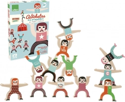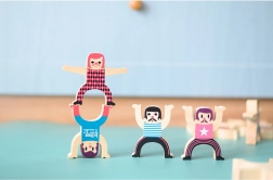 Zgradite svoj stolp akrobatov in preizkusite svojo spretnost ter domišljijo. Lesene figurice v živahnih barvah lahko zlagate v številne stabilne in drzne položaje, zaradi česar je ta igrača idealna izbira za skupno igranje in učenje ravnotežja.