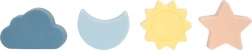 Štirje koščki v obliki sonca, lune, zvezde in oblačka spodbujajo razvoj fine motorike, koordinacije in senzoričnega zaznavanja.