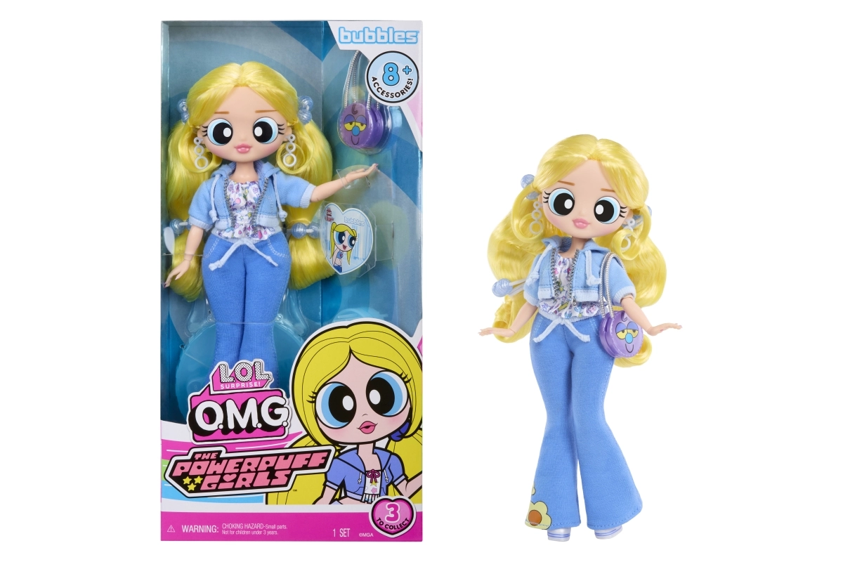 Stilna punčka L.O.L. Surprise! OMG, navdihnjena junakinjami POWERPUFF DEKLETA, prinaša ikoničen lik Bubbles v modrem outfitu, z dolgimi, česalnimi lasmi in členjenim telesom za odlične poze. V pakiranju te čaka 8 presenečenj, vključno z outfitom, čevlji, dodatki, krtačo in stojalom. Odlično darilo za kreativno igro in zbirateljice.