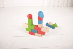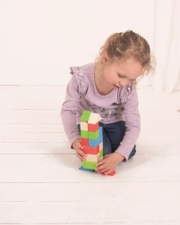 Lesena gradbena igra Bigjigs Baby ponuja edinstveno kombinacijo lesenih kock in plastičnih spojk, ki omogočajo trdne in stabilne konstrukcije. Kocke različnih oblik in barv so idealne za otroške ročice.