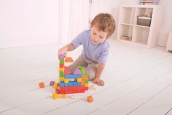 Zahvaljujoč plastičnim spojkam je kocke preprosto povezovati, kar spodbuja otroško ustvarjalnost in motoriko.
