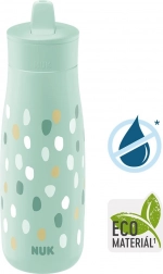 NUK Mini-Me Flip je idealen spremljevalec za male pustolovce. Zahvaljujoč ustniku 2v1 si otrok lahko izbere, ali bo pil skozi slamico ali neposredno. Material ustnika je odporen na grizenje, zato brez težav prenese prve zobke. Steklenička je zasnovana z mislijo na trajnost in kakovost – ohišje je izdelano 82 % iz trajnostnih materialov in ne vsebuje BPA.