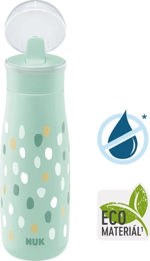 Za vsakodnevno uporabo boste cenili neprepustno zasnovo, zaščitni pokrovček za higiensko pitje na poti ter enostavno vzdrževanje v pomivalnem stroju. Moderen dizajn iz linije NUK Mini-Me je mogoče kombinirati z združljivo dodatno opremo iste linije.