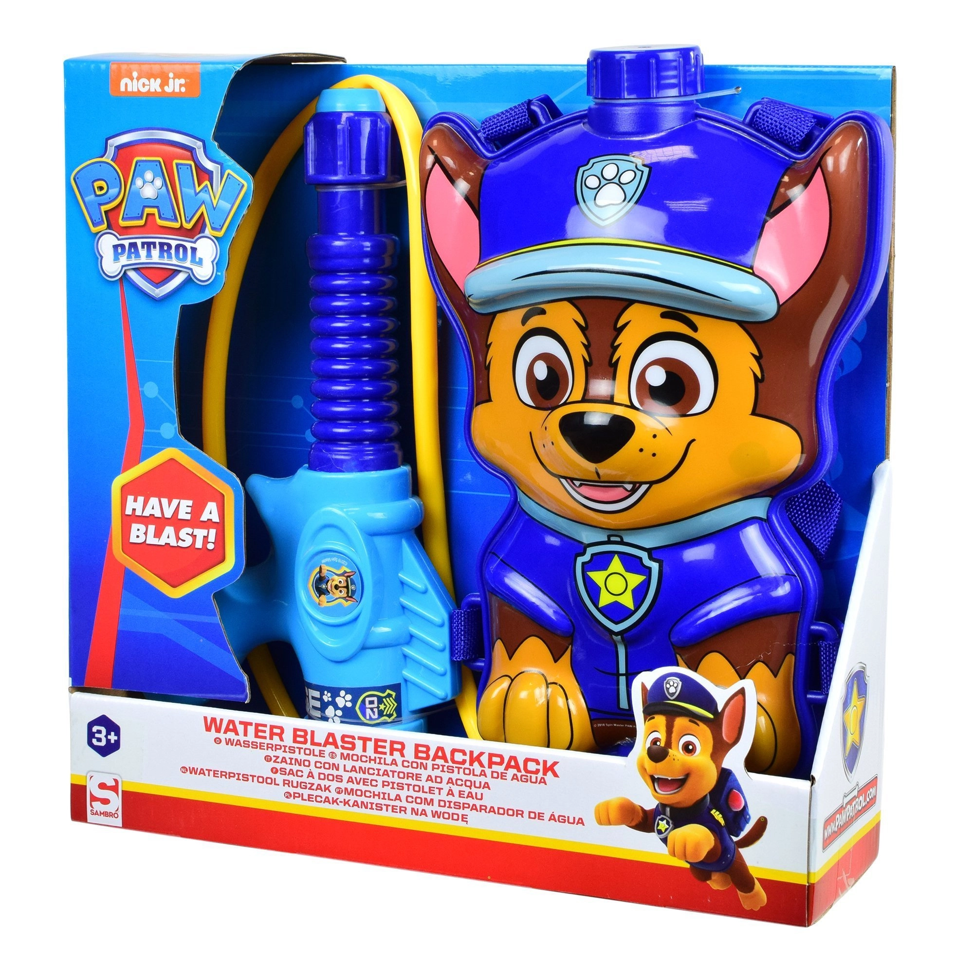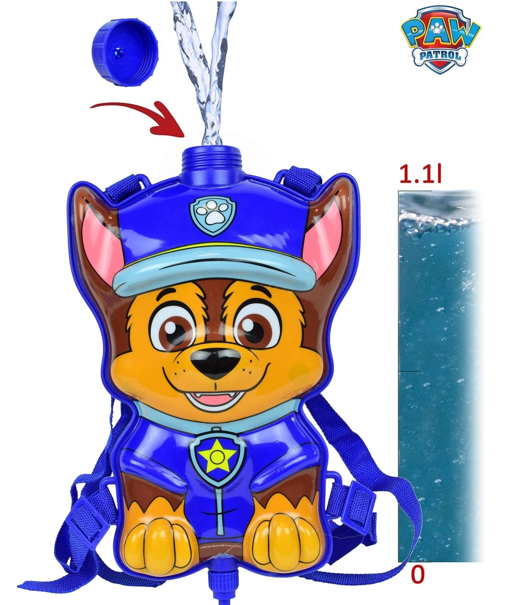 Zabaven vodni nahrbtnik z likom Chase iz serije Tačke na patrulji za neskončno poletno zabavo. Nahrbtnik ima nastavljive naramnice, zapiralno polnilno odprtino in je povezan s cevko ter ročno vodno pištolo s črpalko. Idealno za vrt, k vodi in na igrišče.